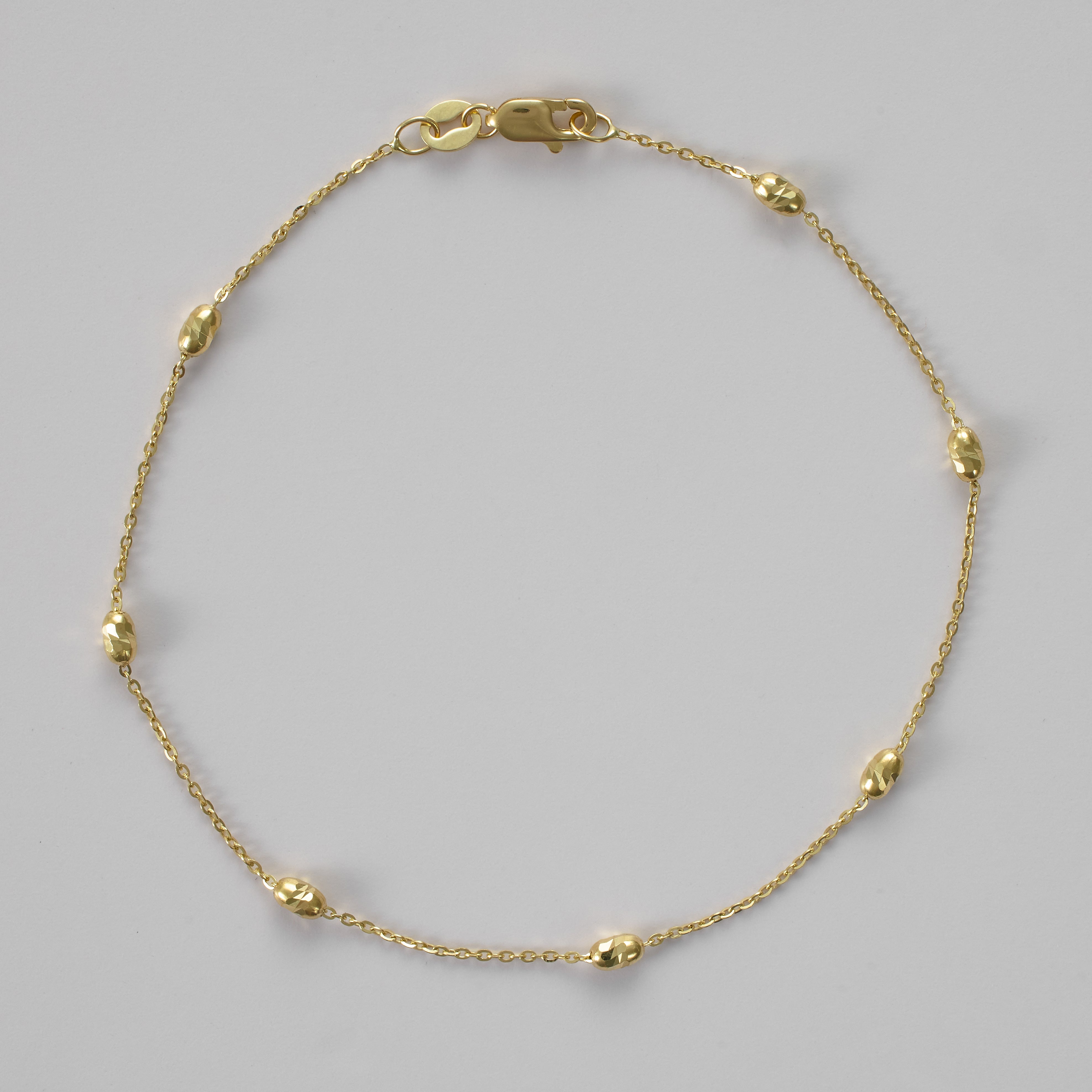 Pure 14k Yellow Gold Cable Chain with 2.5mm Diamond Cut Oval Beads