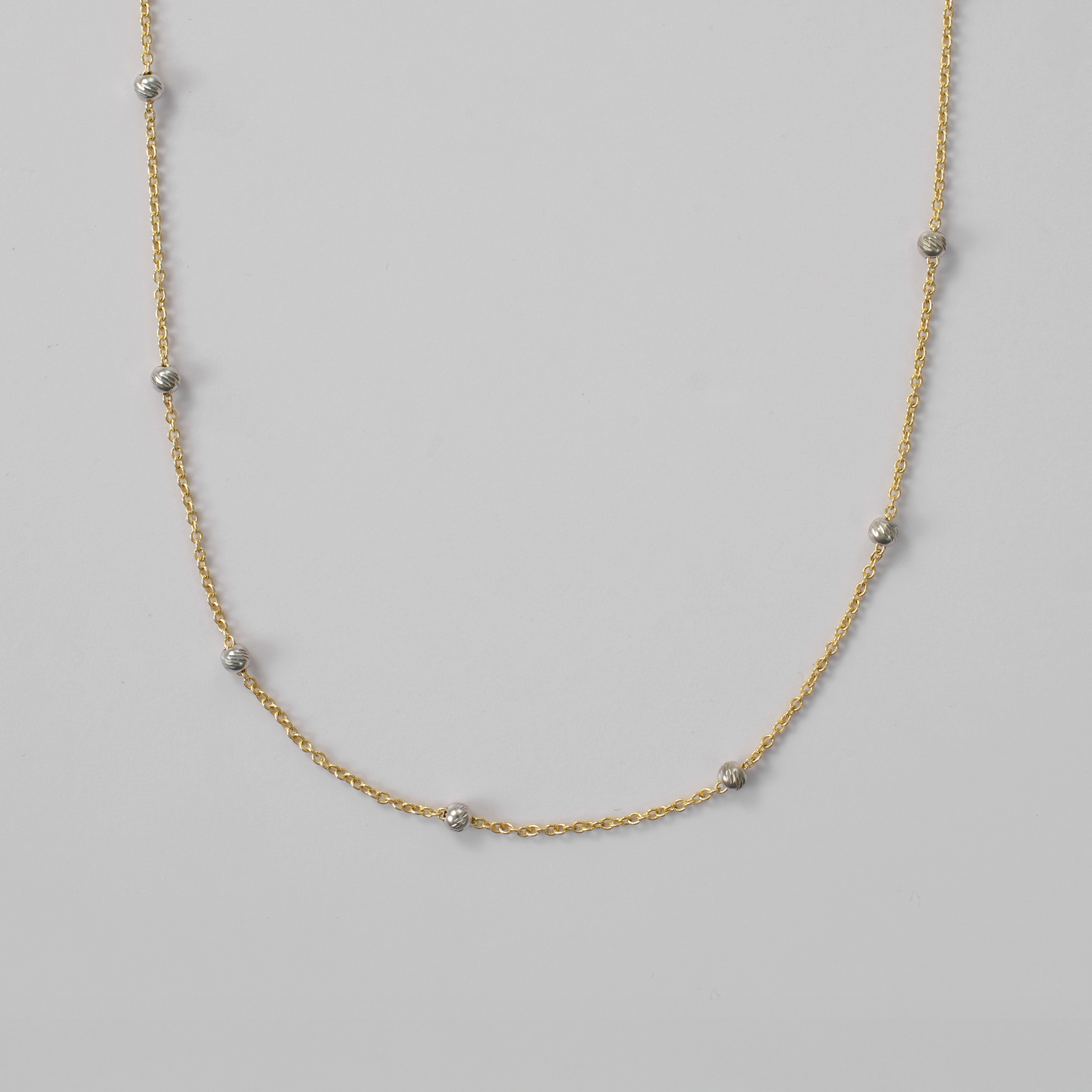 Pure 14k Gold Cable Chain with White Gold Diamond Cut Beads