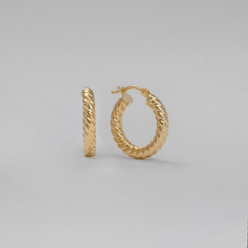 Pure 14k Yellow or White Gold Ribbed Hoops