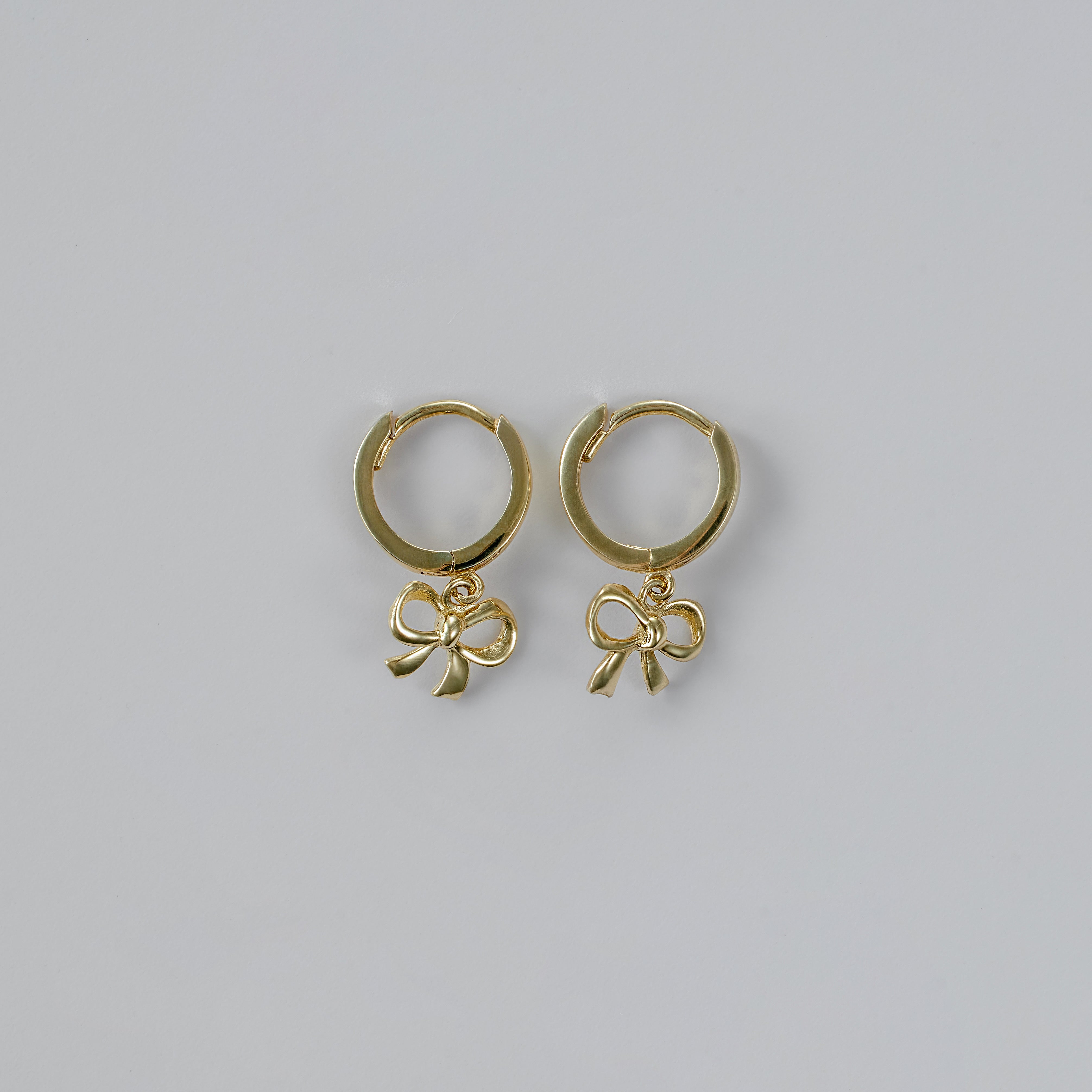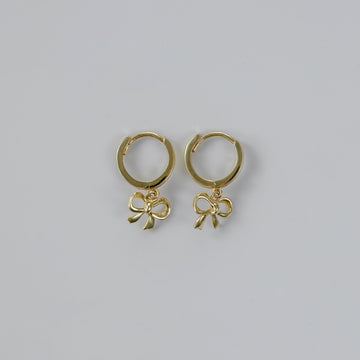 Pure 14k Yellow Gold Huggies with Drop Bow Charm
