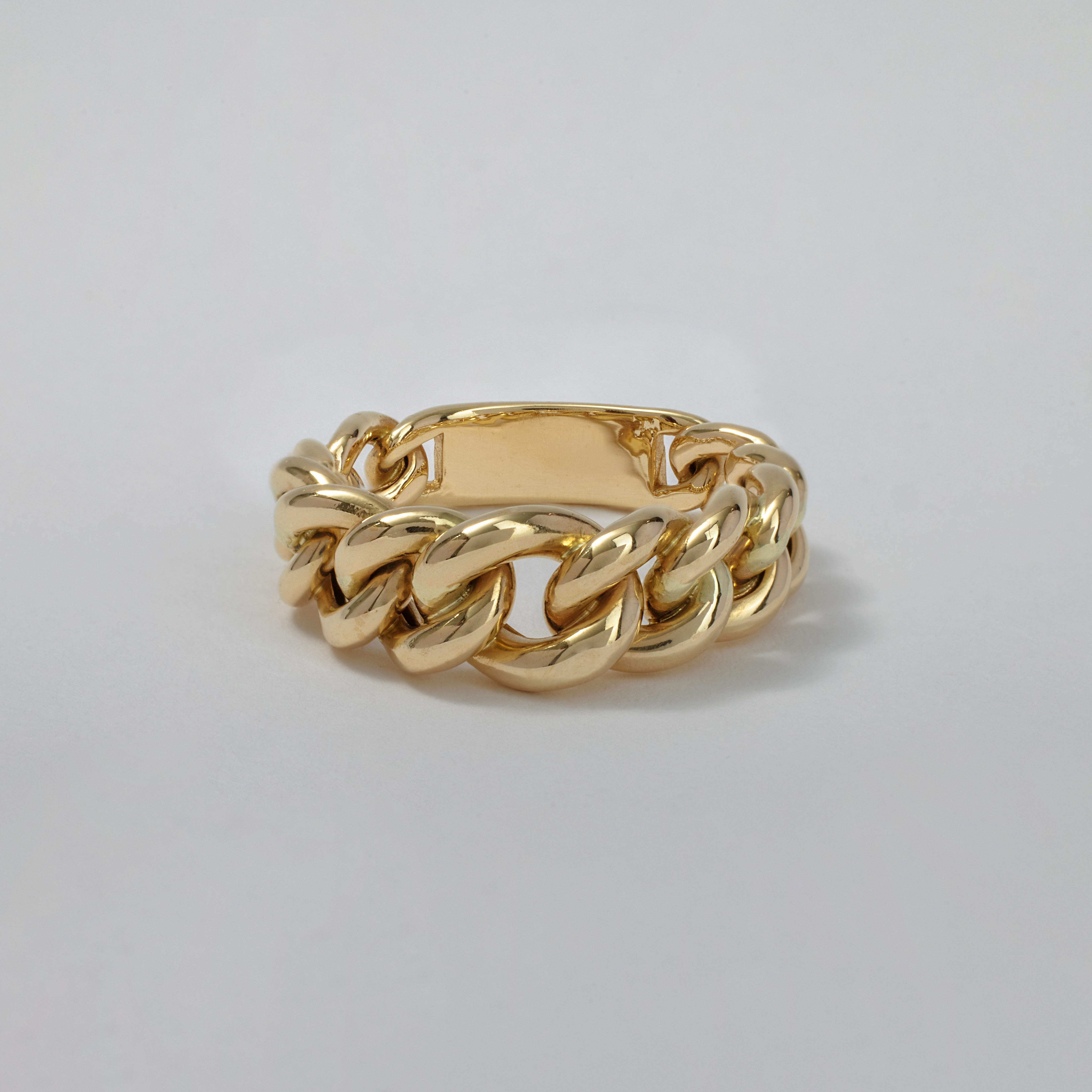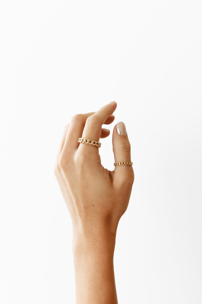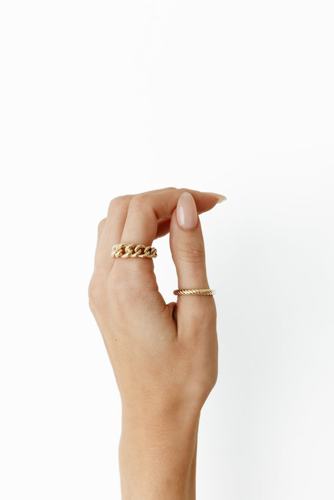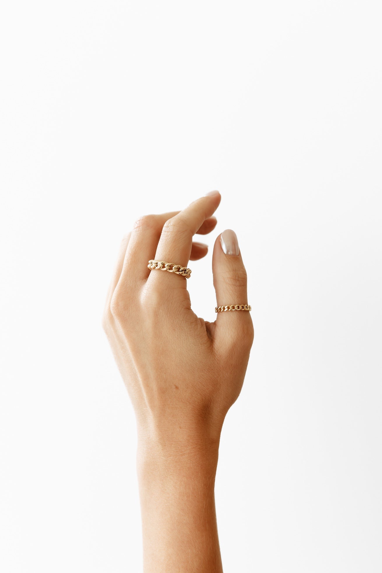 14k Yellow Gold Cuban Link Ring (Small), 14k Yellow Gold Concave Open Curb Ring (Medium, Large)